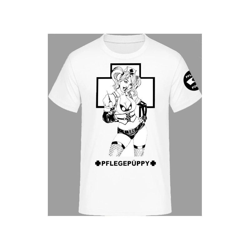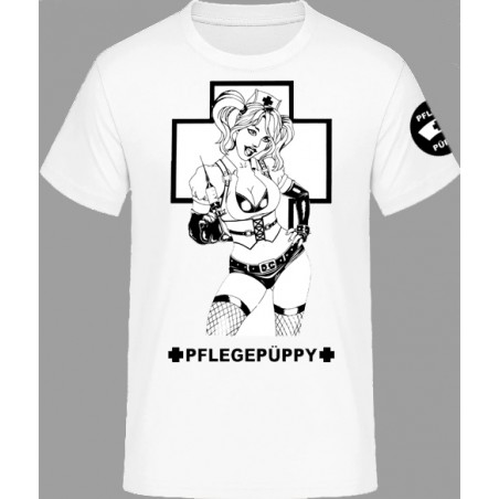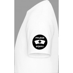 Shirt mit großem Frontprint und rundem Ärmelprint Logo "PFLEGEPÜPPY".
